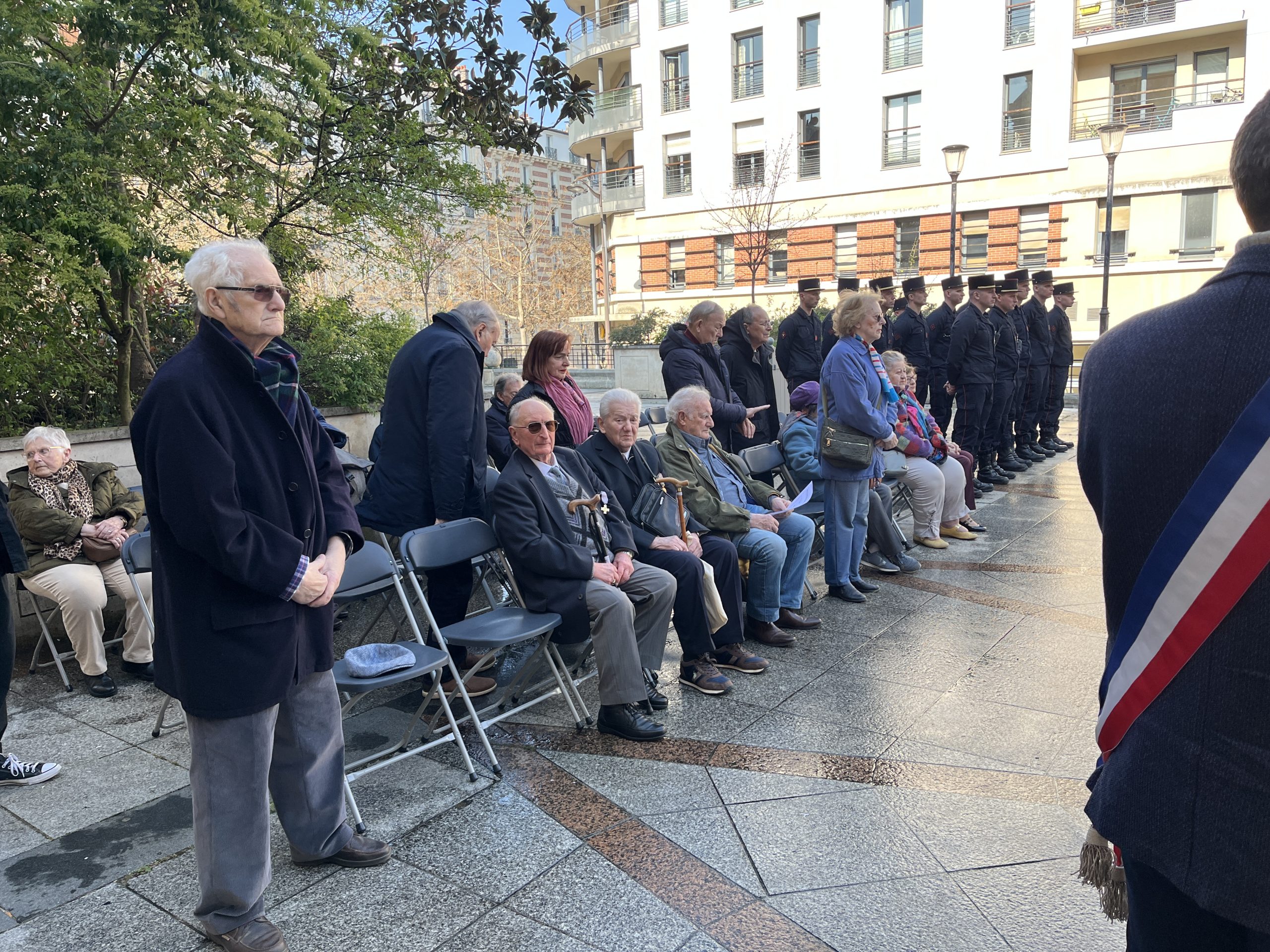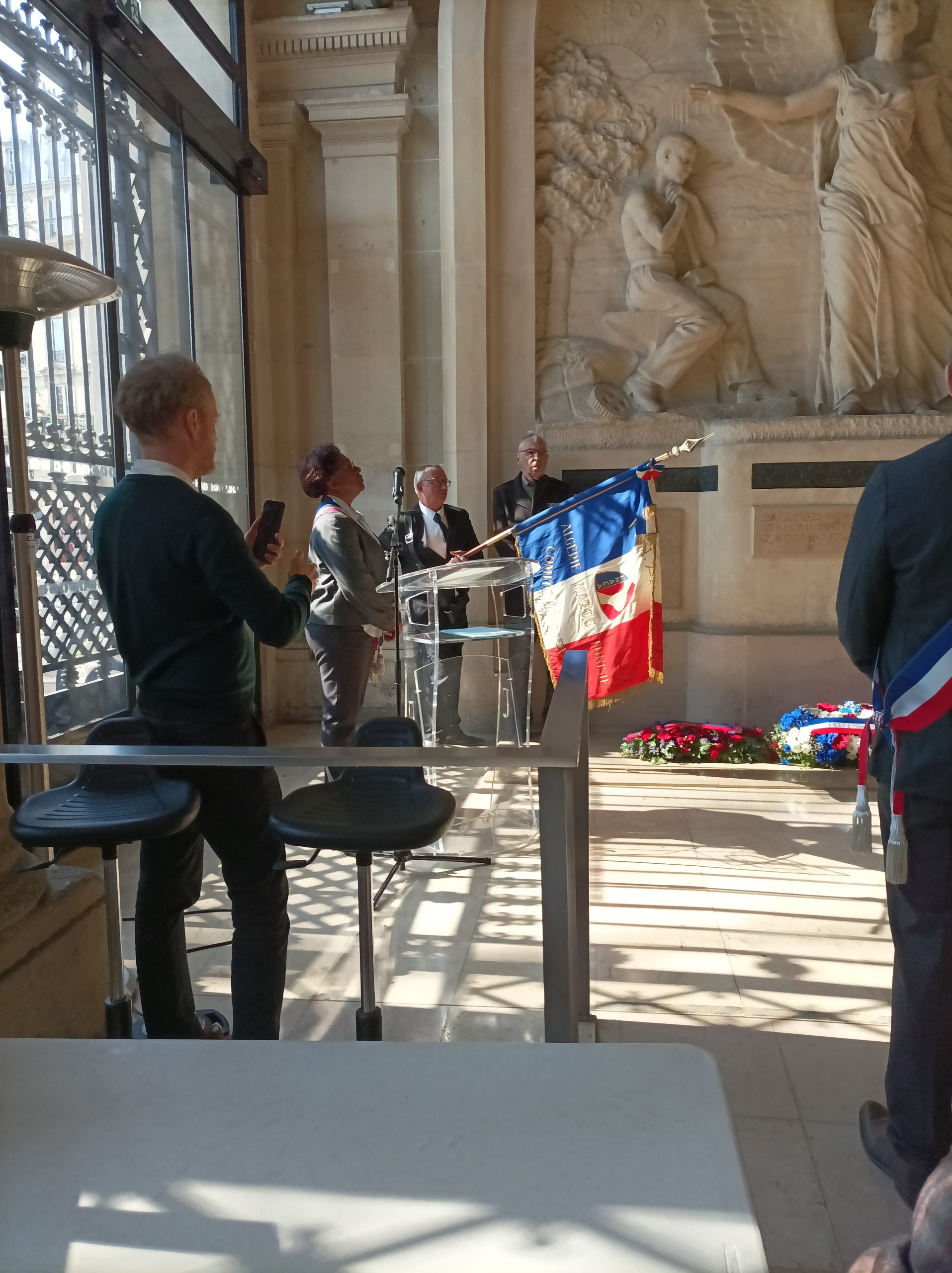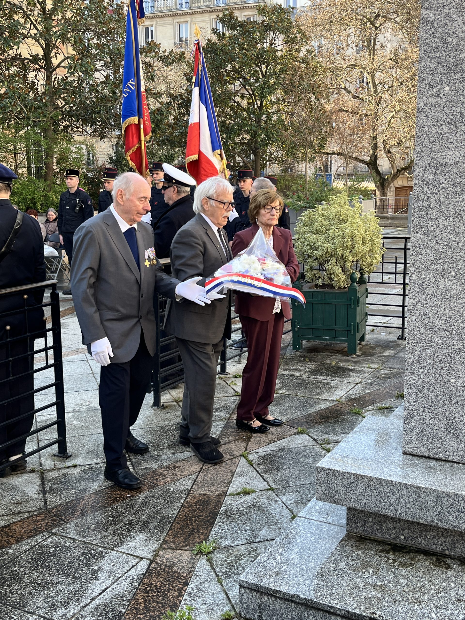 En présence des autorités de la maire de Paris, des représentants des préfets de Région et de Paris, du Président de la FNACA de Paris, des présidents d’associations d’anciens combattants et des porte-drapeaux.