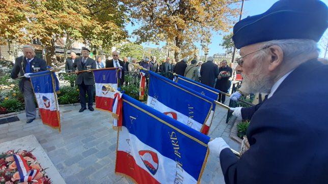 En fin de matinée, les congressistes précédés par un grand nombre de drapeaux se sont rendus au Monument aux Morts, place d’Italie, afin de déposer une gerbe et un bouquet de fleurs au Jardin Maurice SICART.